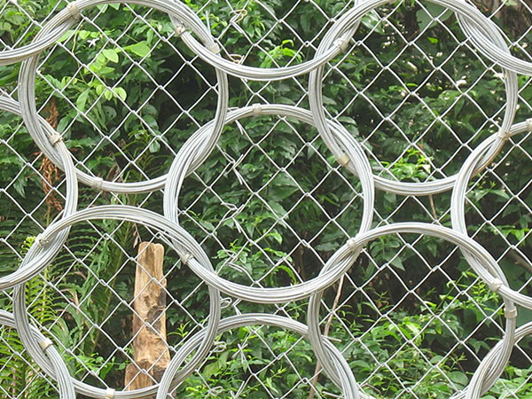 環(huán)形防護(hù)網(wǎng)采用熱鍍鋅工藝,在落石沖擊過程中能發(fā)生自身幾何形態(tài)改變、具有更為突出柔性特征的環(huán)形防護(hù)網(wǎng)來取代鋼絲繩網(wǎng),以此為基礎(chǔ)的攔石網(wǎng)能夠?qū)崿F(xiàn)3000kJ以上的落石阻攔,并能進(jìn)一步簡化結(jié)構(gòu)形式(如支撐繩和減壓環(huán)的配置)、方便局部受損后的維護(hù)修復(fù),環(huán)形防護(hù)網(wǎng)已經(jīng)成為一種替代鋼絲繩網(wǎng)系統(tǒng)的新型攔石網(wǎng)(RXI型),實現(xiàn)了SNS被動防護(hù)系統(tǒng)的更新?lián)Q代和升級。